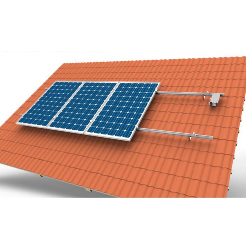 Данный комплект предназначен для монтажа солнечных батарей на плоской наклонной крыше (мягкая черепица), либо металлочерепице в три ряда.