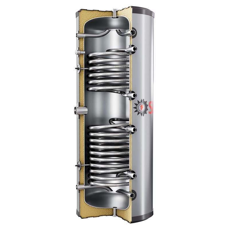 Напольный бойлер косвенного нагрева SILA SSL-500-D PREMIUM (бак аккумулятор) объемом 500 литров из качественной нержавеющей стали SUS316L с двумя теплообменниками увеличенного диаметра, площадью 4.04м2, предназначен для нагрева, аккумулирования и последующего использования горячей воды для отопления и горячего водоснабжения вашего дома. Использование в системе бака аккумулятора SILA SSL-500-D значительно увеличивает ее ЭФФЕКТИВНОСТЬ и БЕЗОПАСНОСТЬ, предотвращая закипание и прочие неприятности. Эффективная работа твердотопливного котла или теплового насоса без бака аккумулятора – НЕВОЗМОЖНА, КПД системы снижается в разы, тепло в прямом смысле этого слова вылетает в трубу.