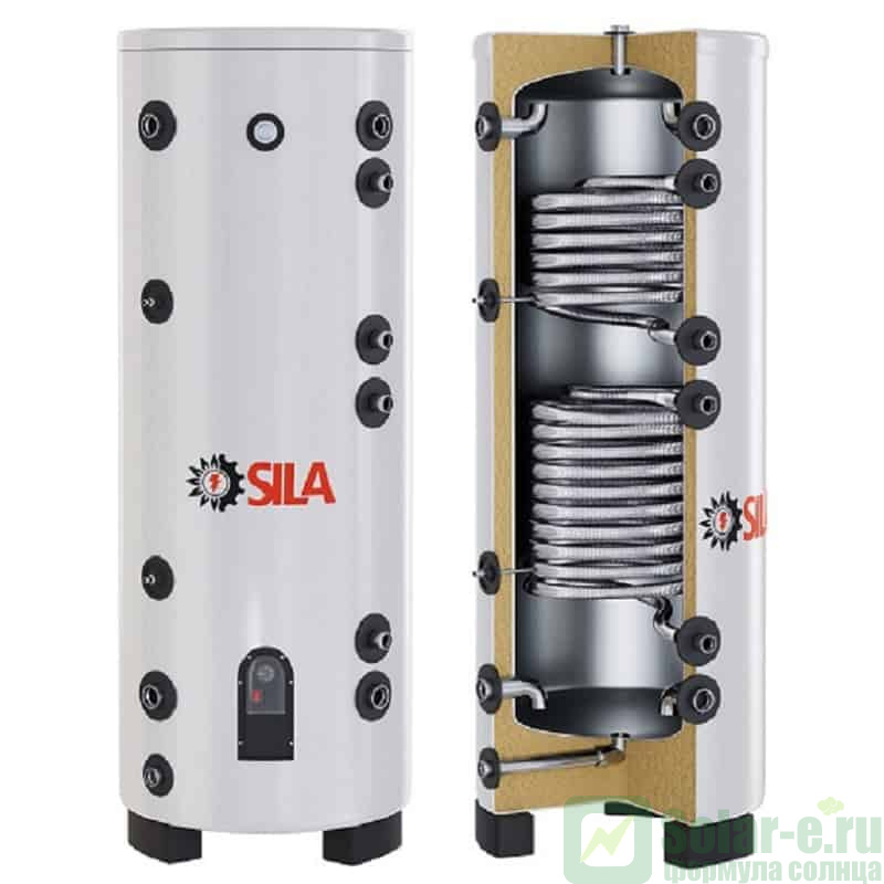 Напольный бойлер косвенного нагрева SILA SST-200-D ( бак аккумулятор ) объемом 200 литров из качественной нержавеющей стали толщиной 1,5 мм с двумя теплообменниками из медицинской нержавеющей стали SUS316L, предназначен для нагрева, аккумулирования и последующего использования горячей воды для отопления и горячего водоснабжения вашего дома. Использование в системе бака аккумулятора SILA SST-200-D значительно увеличивает ее ЭФФЕКТИВНОСТЬ и БЕЗОПАСНОСТЬ, предотвращая закипание и прочие неприятности. Эффективная работа твердотопливного котла или теплового насоса без бака аккумулятора – НЕВОЗМОЖНА, КПД системы снижается в разы, тепло в прямом смысле этого слова вылетает в трубу.